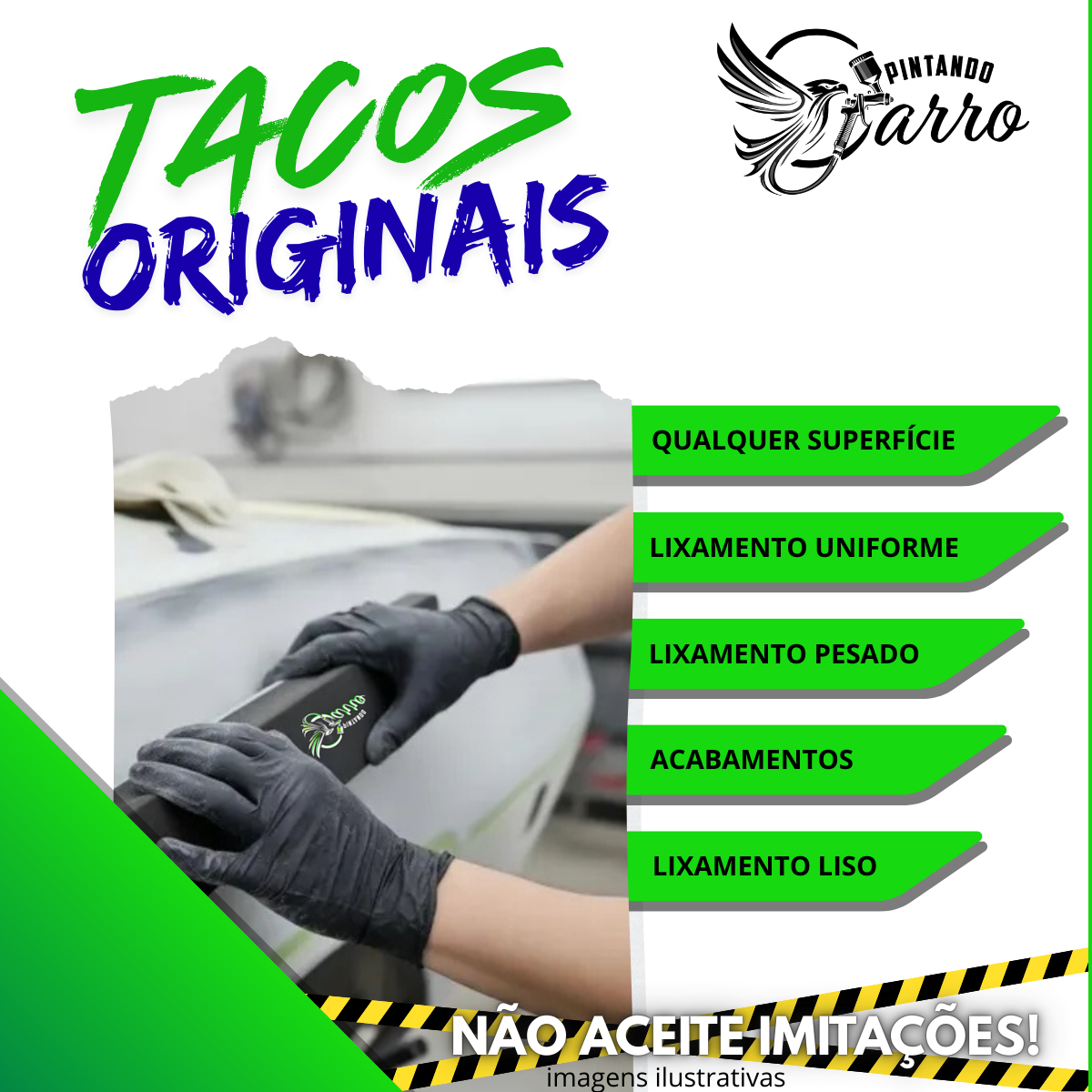 Produto original Pintando Carro. Feito de EVA leve e de alta qualidade. Fácil de limpar. Seu formato oferece conforto e aumenta a produtividade no lixamento. Seu peso leve permite que não afunde na água. Os tacos são compatíveis com qualquer grão e tipo de lixa, permitindo que você escolha a granulação ideal para cada etapa do seu projeto.